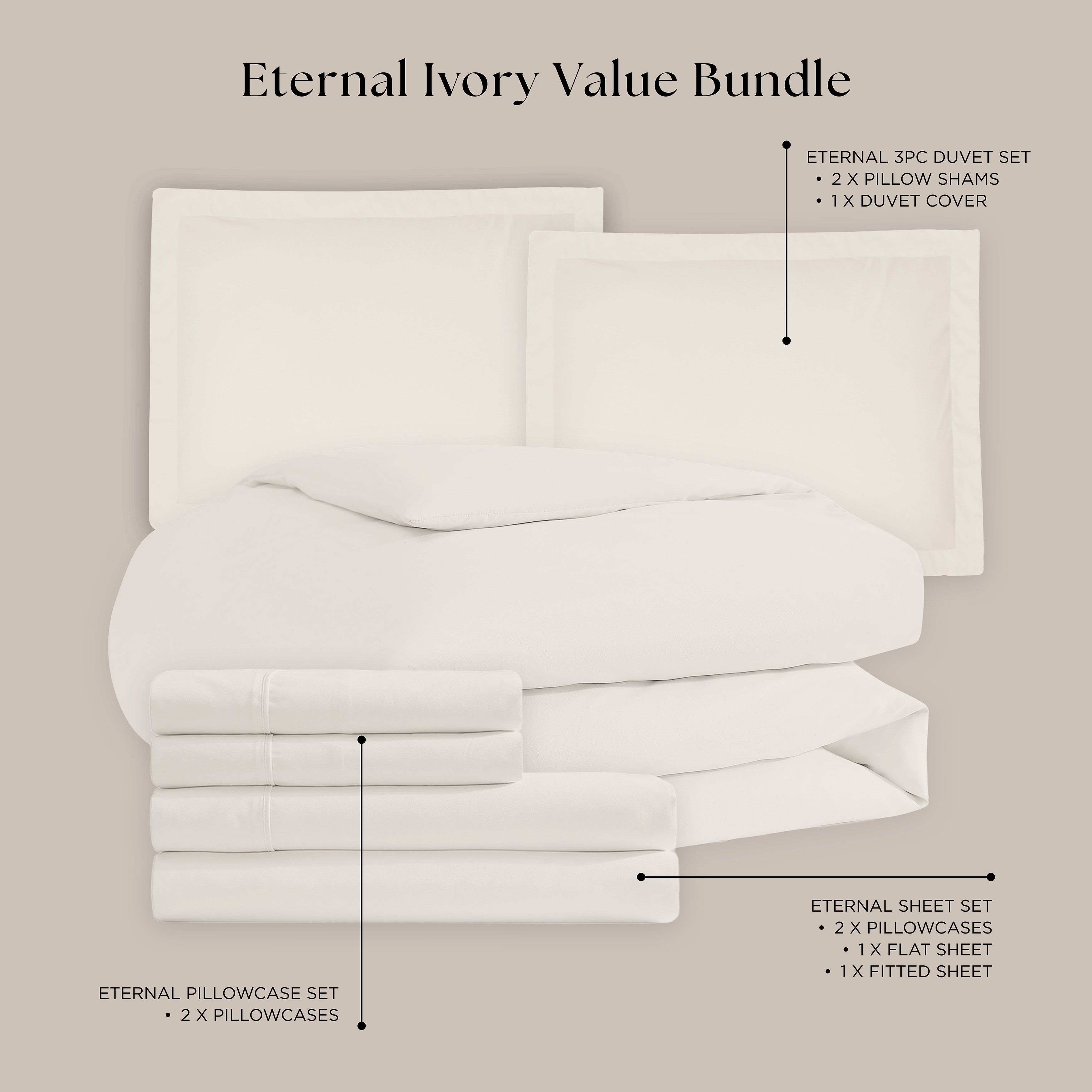 1 Eternal Sheet Set (Ivory) – smooth, breathable comfort with a crisp, polished look.