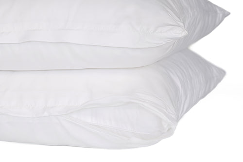 Essential protection for healthier sleep. The Hypoallergenic 2-Piece Pillow Protector Set blocks allergens, dust mites, and moisture while maintaining breathability for comfortable rest. The soft, quiet fabric ensures undisturbed sleep without crinkling or rustling. Full zippered closure keeps pillows completely enclosed and protected, while hypoallergenic construction benefits those with sensitivities. Machine washable for easy care—these protectors extend pillow life while maintaining a clean, healthy sleep surface.